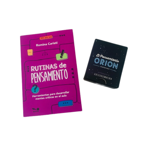 Expandí tus ideas junto a nuestro juego de debate El Pensamiento Orión Starter Pack y el libro Rutinas de Pensamiento: herramientas para desarrollar herramientas críticas en el aula. Ver más detalles